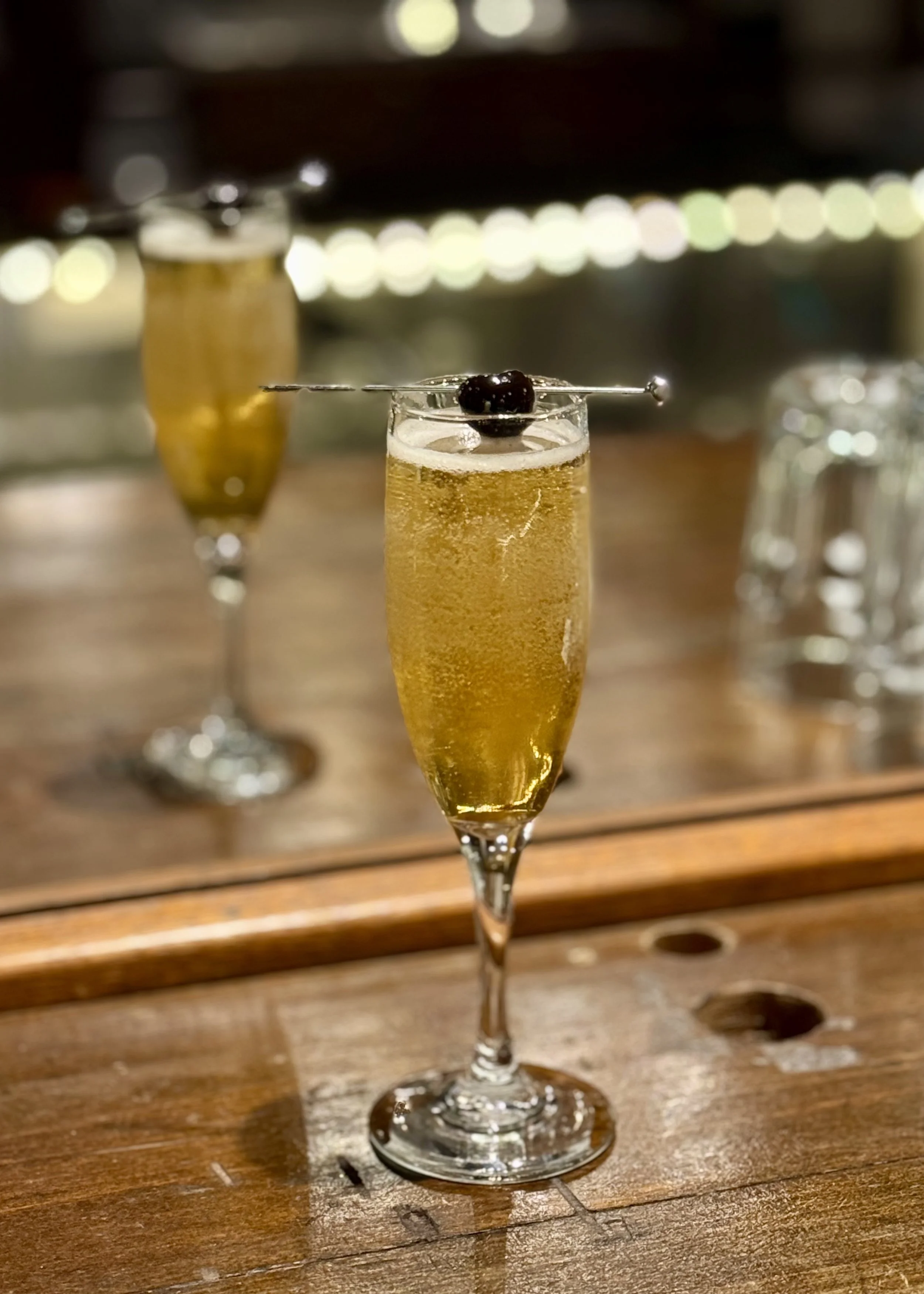 A modern heir to the classic Champagne Cocktail. Laird’s bonded apple brandy and a touch of sweet vermouth form the backbone, shaken with the Doctor’s own Autumn Syrup — a spiced blend of cinnamon, clove, nutmeg, allspice, and cardamom. Topped with Prosecco, it lands somewhere between bright and warming, refined and quietly decadent. Perfect at the start of the evening or the end of one.